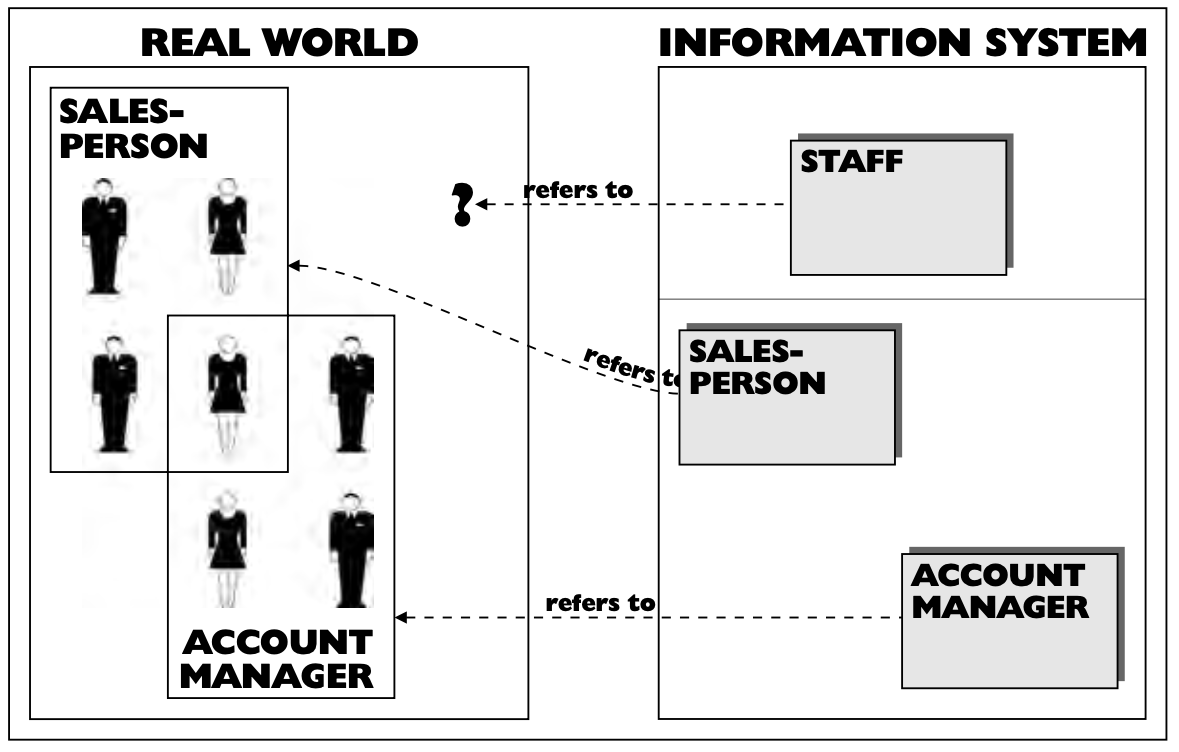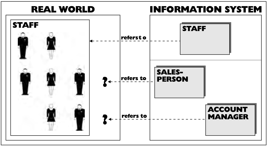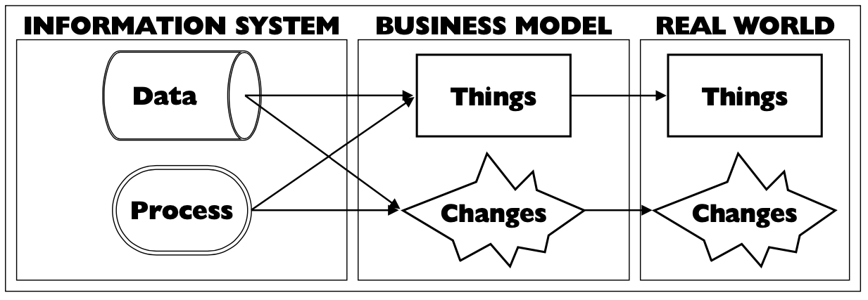 ---- #### Подходы к моделированию предметной области в программировании - минималистичный базис (SmallTalk, Lisp, Erlang) - богатые языковые возможности (C++, Scala, PHP, Ruby) - что-то по середине (C, Go) Минималистичный **базис** позволяет: упростить разработку компилятора; упростить изучение языка; универсализация механизмов. Но: необходимость "адаптации" к прикладным задачам; многообразие таких адаптаций; сложность оптимизаций (поиск паттернов, а не конструкций). **Проблема**: как свести предметную область к небольшому базису в нашем изменчивом мире? --- ## Как подступиться к проблеме?  Необходимо сосредоточиться на объектах предметной области, из неопределённости и возможности множества интерпретаций. **Вопрос**: Какие объекты/явления мы моделируем (4 штуки)? ---- ### Конкретные объекты  ---- ### Обобщённые объекты  ---- ### Отношения и взаимосвязи  ---- ### Изменения и действия   --- ## Объекты предметной области и