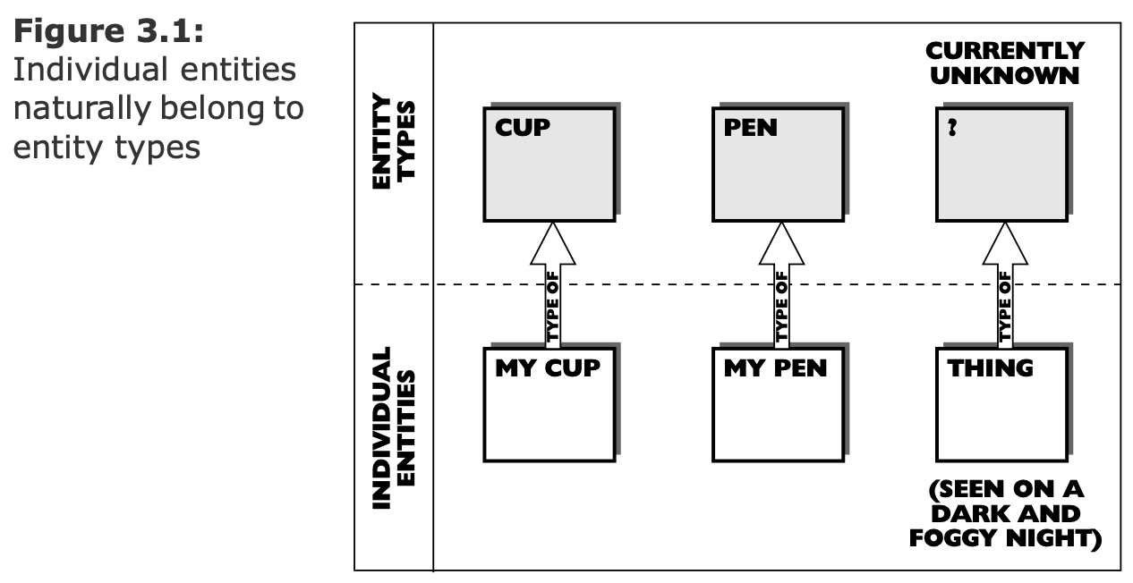 (Entity paradigm)  - Тип сущности (Entity type) - Экземпляр сущности (Individual entity) - Атрибут (Attribute) ---- ### Миф о пещере