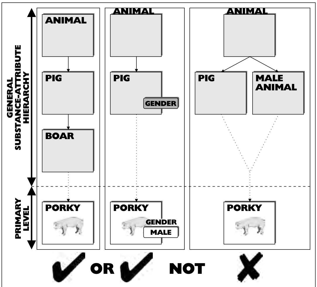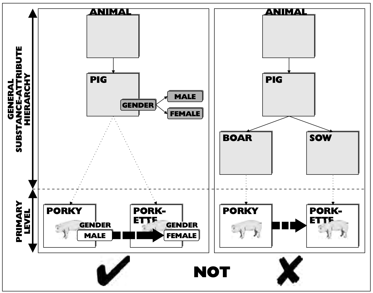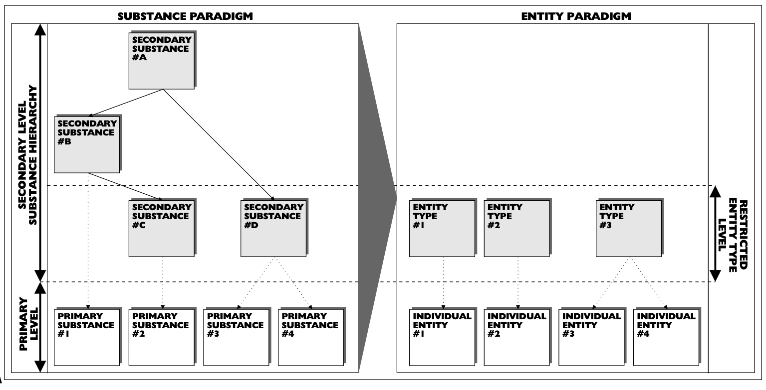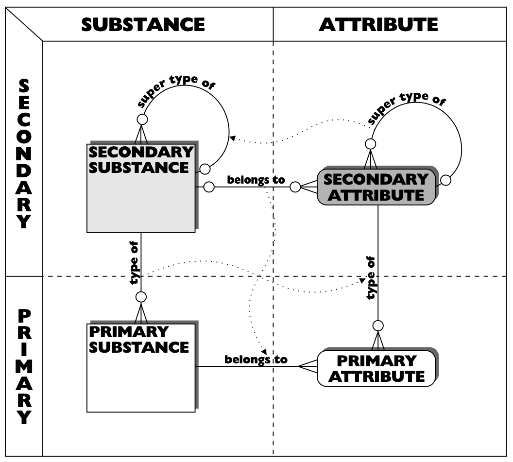 **Вопрос**: Какой вариант правильный? Нет неправильного. Есть разные применения. --- ## Субстанциональная парадигма (Substance paradigm)  - Вторичная иерархия субстанции (Secondary Substance Hierarchy) - Вторичная иерархия атрибутов (Secondary Attribute Hierarchy) ----