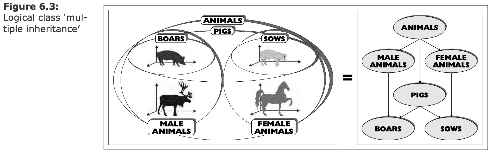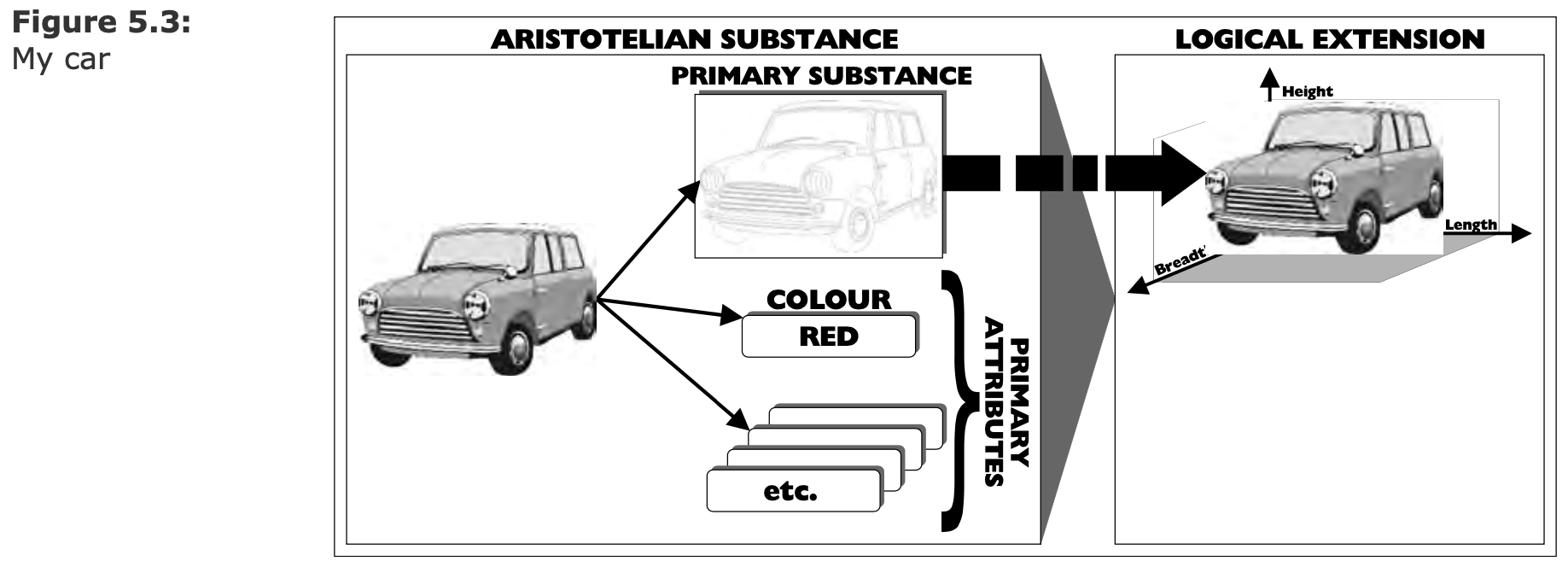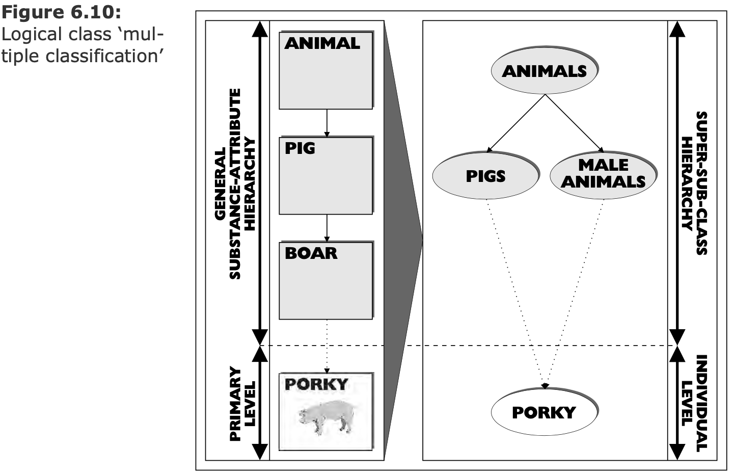 (Logical paradigm, extensionalism)    (*БВК*) - Логический класс (Class) - Логическая пара (Tuple) - Конкретный объект (Individual) ---- ### Проблема необднозначного сопоставления объекта и символа(-ов)  1. Один объект и много символов — норма. 1. Один объект и много интерпретаций — норма. 1. Интерпретации объекта могут не знать друг о друге. 1. Что позволяет идентифицировать объект? ---- ### От субстанции к расширениям (Extension) 1. Отказываемся от понятия "Субстанция" 1. Идентичность — не свойство объекта. 1. Идентичность — навык наблюдателя. 1. Cвойство объекта — результат взаимодействия.  - Как различить одинаковые машины, если не по координатам? - Разве координата имеет отношение к субстанции? - Принцип строгого соответствия: если объекты неразличимы — значит это один объект. ---- #### Атрибут как расширение  ---- #### Субстанция как расширение  ---- #### Множественная классификация  ---- #### Устранение противоречий  - Снятие противоречия: сущность или атрибут. - Гранулярность рассмотрения управляется пользователем, а не разработчиком модели. --- ### Отношение это кортеж (tuple) или пара
