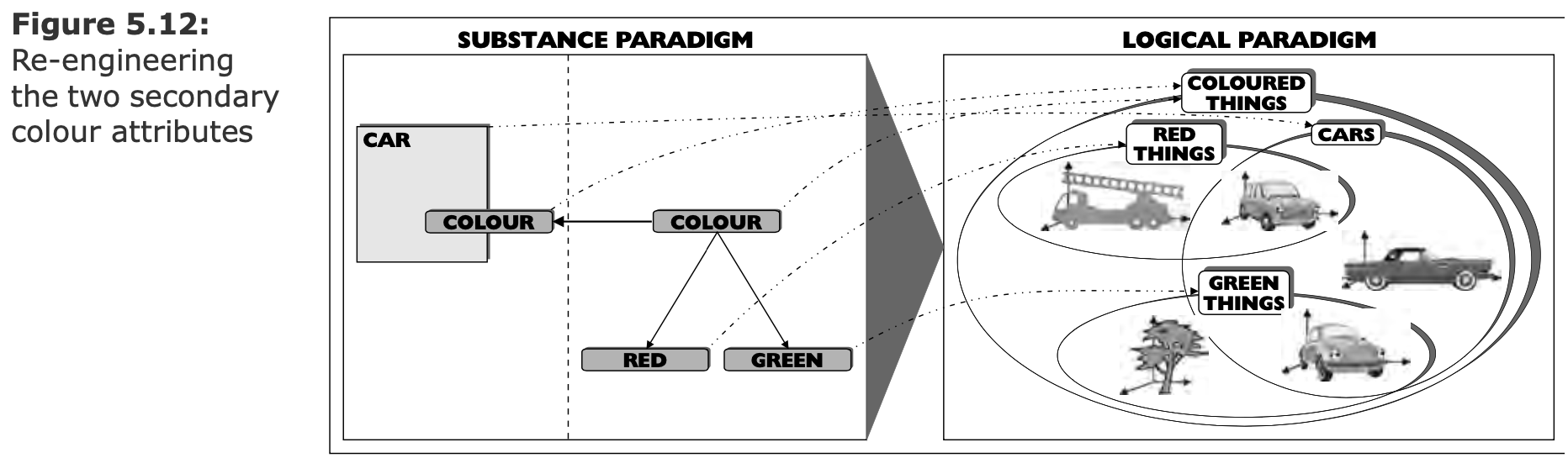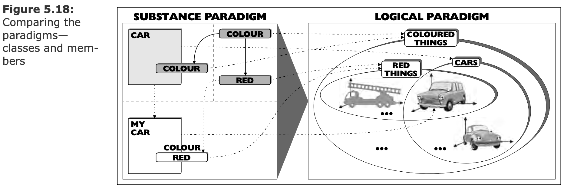 --- ## Логическая парадигма. Проблемы - Как описать процессы? ---- ### Эксперимент с машиной  В чём проблема и как с ней бороться? ---- ### Изменение расширения (класса) объекта  --- ## Логическая парадигма. Summary ### Субстанция и атрибуты  ---- ### Отношения  ---- ### Отображение субстанциональной парадигмы  - Сокращение понятийного базиса. - Устранение проблемных вопросов. --- ## Объектная парадигма