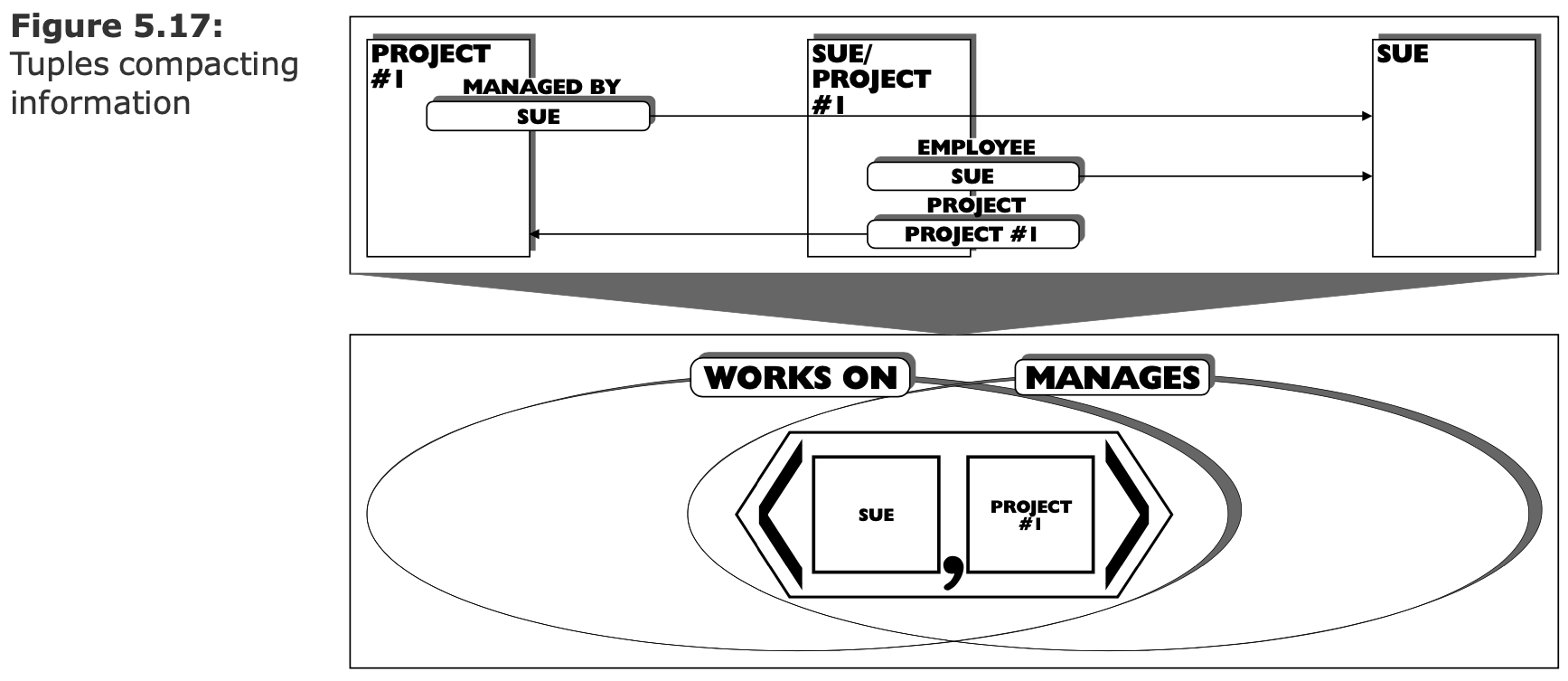 - Таблицы — классы. - Значения атрибутов — классы. - Появление инвариантов,связывающих классы. - Конкретный человек — класс, "собирающий" строку.