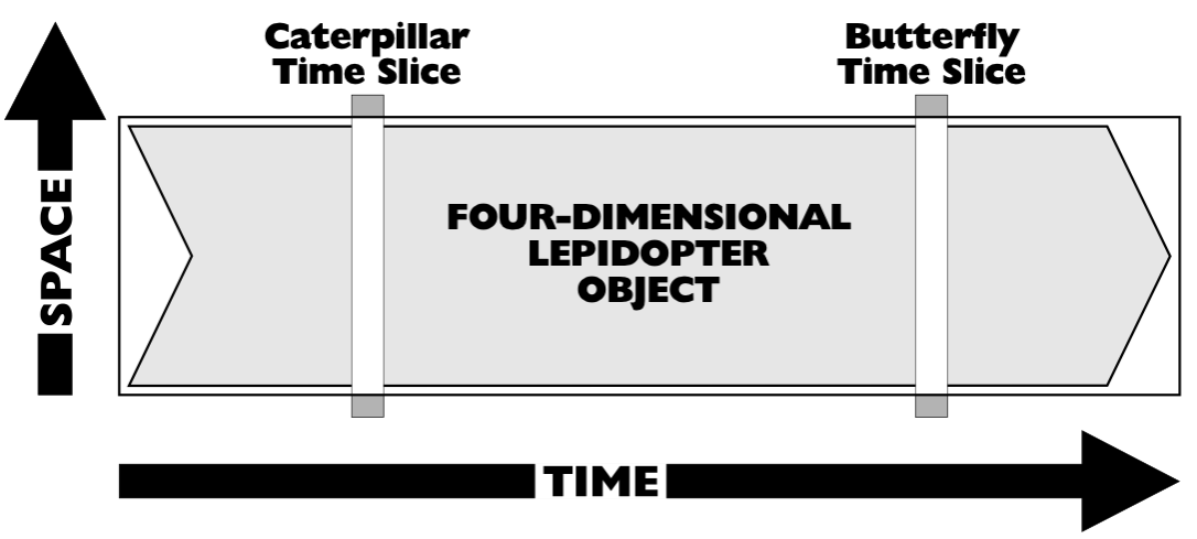 (Object Paradigm, 4d extensionalism)  - Время. - Темпоральные части (Temporal Parts). - Объекты всего жизненного цикла (Whole Life Individual). ---- ### Реальные объекты существуют