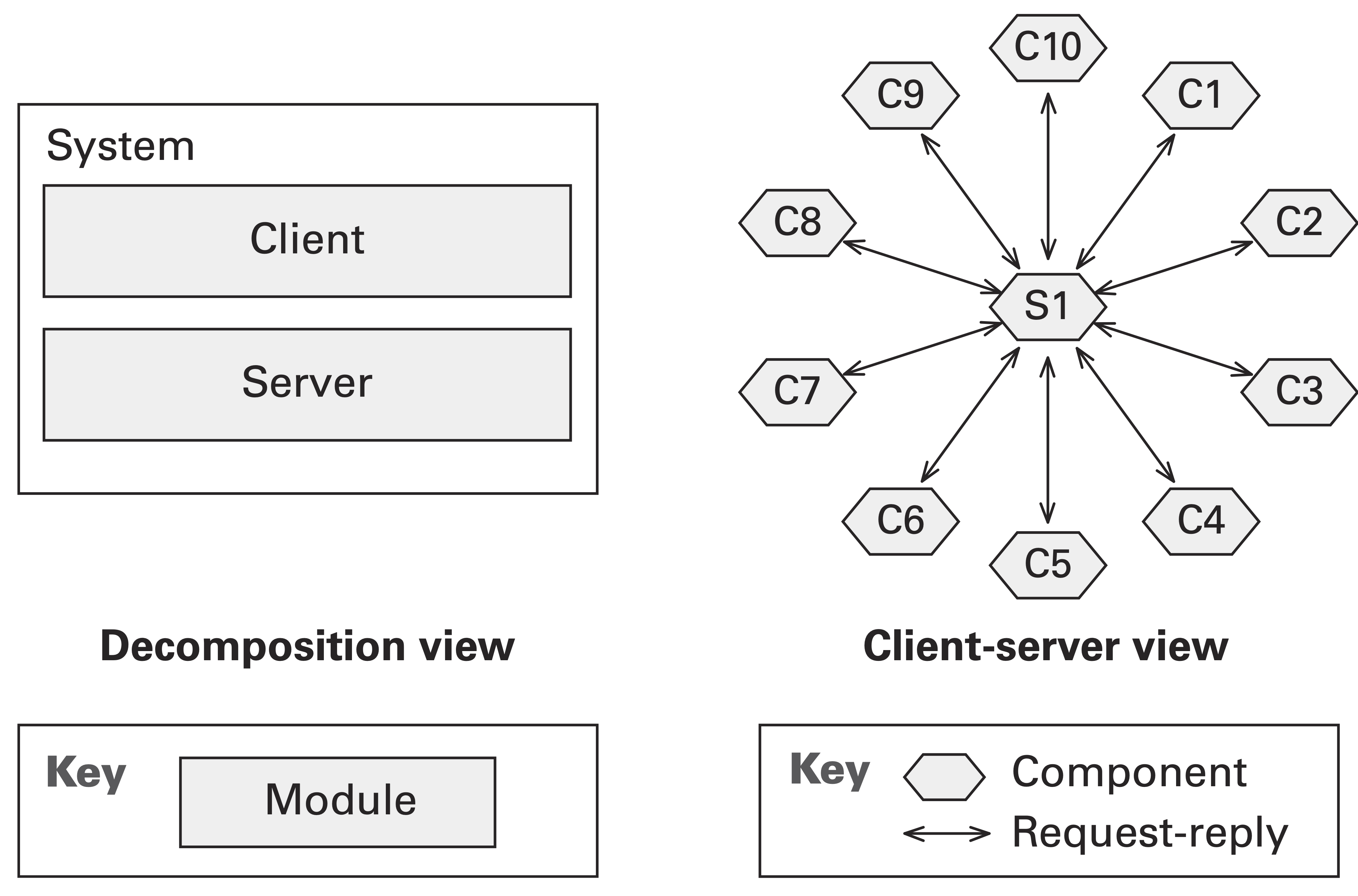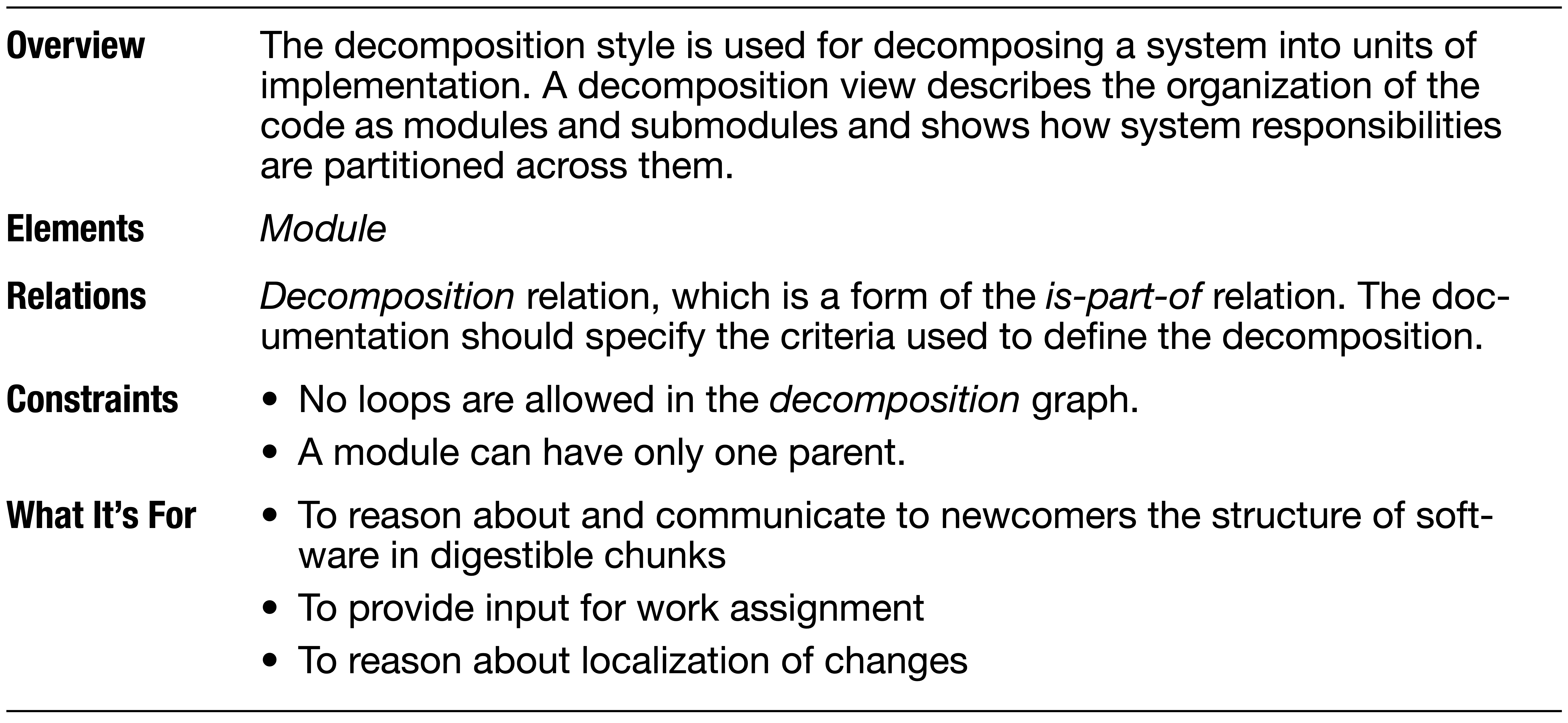 - Простая декомпозиция системы на модули. - В чистом виде на практике практически не используется.