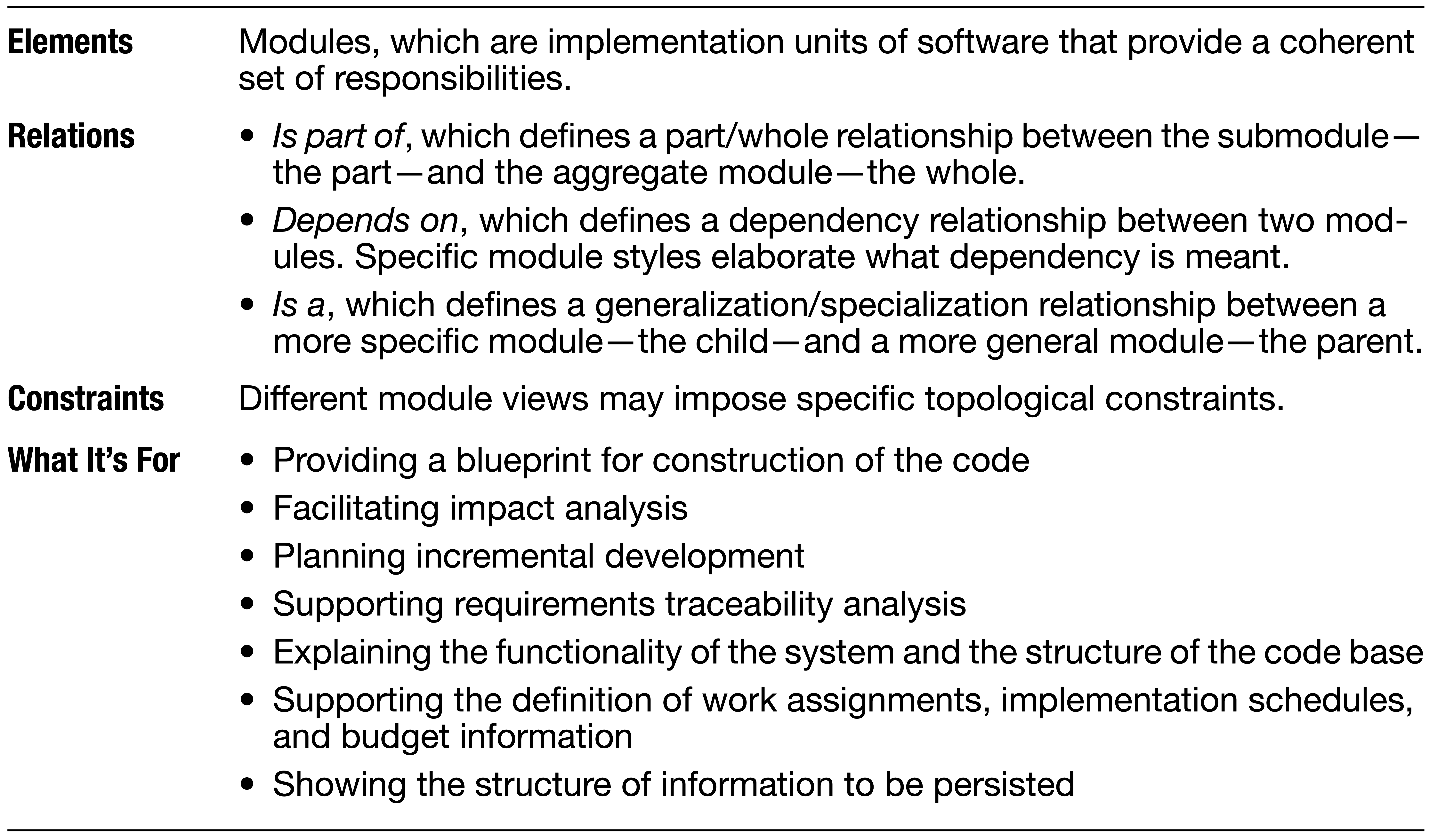 - Декомпозиция и использование одними модулями других. - Планирование разработки. - Отладка и составление планов регрессионного тестирования.